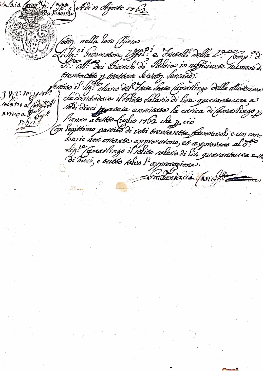 Oltre alle vicende familiari, il fascicolo include anche verbali e corrispondenze amministrative della Compagnia dei Bianchi, un’organizzazione religiosa che svolgeva un ruolo importante nella gestione del patrimonio e nell’assistenza ai bisognosi. Questi documenti ci permettono di comprendere meglio il ruolo delle istituzioni religiose nella società toscana del Settecento.
