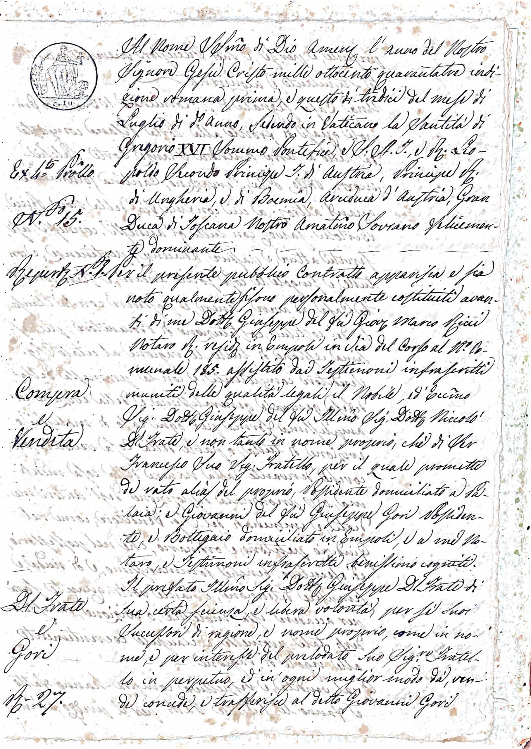 Immaginate una Toscana ottocentesca, divisa tra il progresso liberale del Granducato sotto Leopoldo II e l’ombra conservatrice dello Stato Pontificio governato da Gregorio XVI. Un’epoca di transizione, dove le antiche consuetudini si scontrano con nuove opportunità, e dove anche la compravendita di un podere può rivelare un microcosmo di tensioni economiche e sociali.